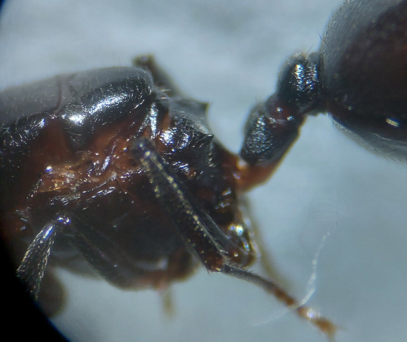 5- Post-pétiole attaché à la face dorsale du segment abdominal et capable de se fléchir vers le haut sur la face dorsale du corps. Pétiole fortement aplati et dépourvu de nœud dorsal.